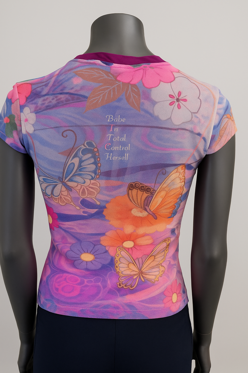Printed Mesh T Shirt with Embelishment Purple Butterflies