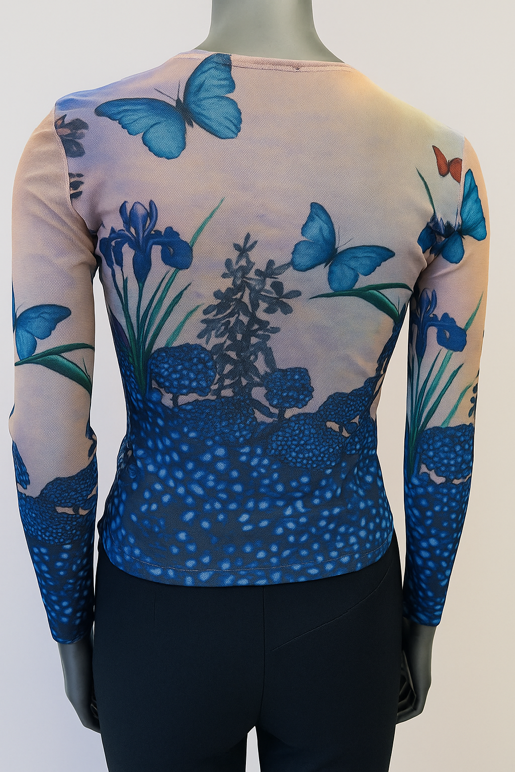Printed Mesh T Shirt with Embelishment Butterflies print