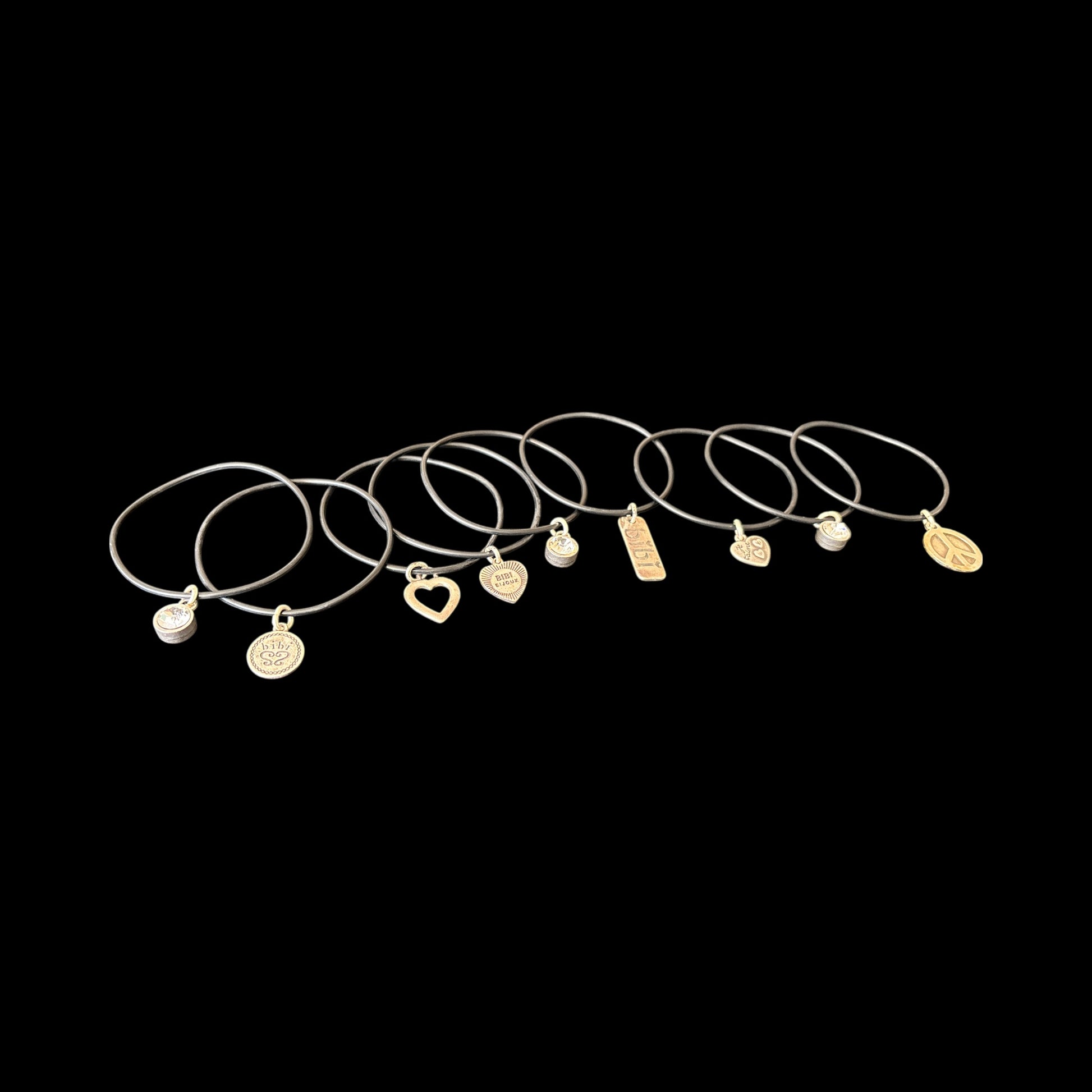 Stack of leather bracelets with unique silver charms