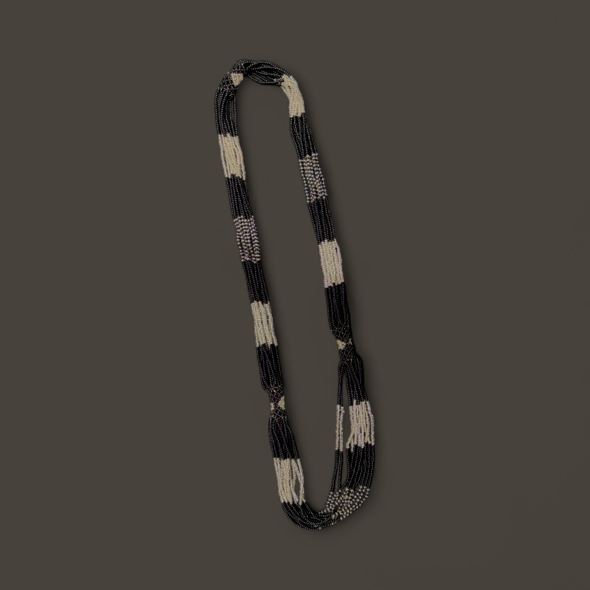 Elevate your ensemble with this expertly crafted string of black and white beads, combining classic contrast with versatile style. The alternating pattern offers a balanced aesthetic that complements both casual and formal attire, providing a refined accessory that enhances your overall look with timeless elegance.